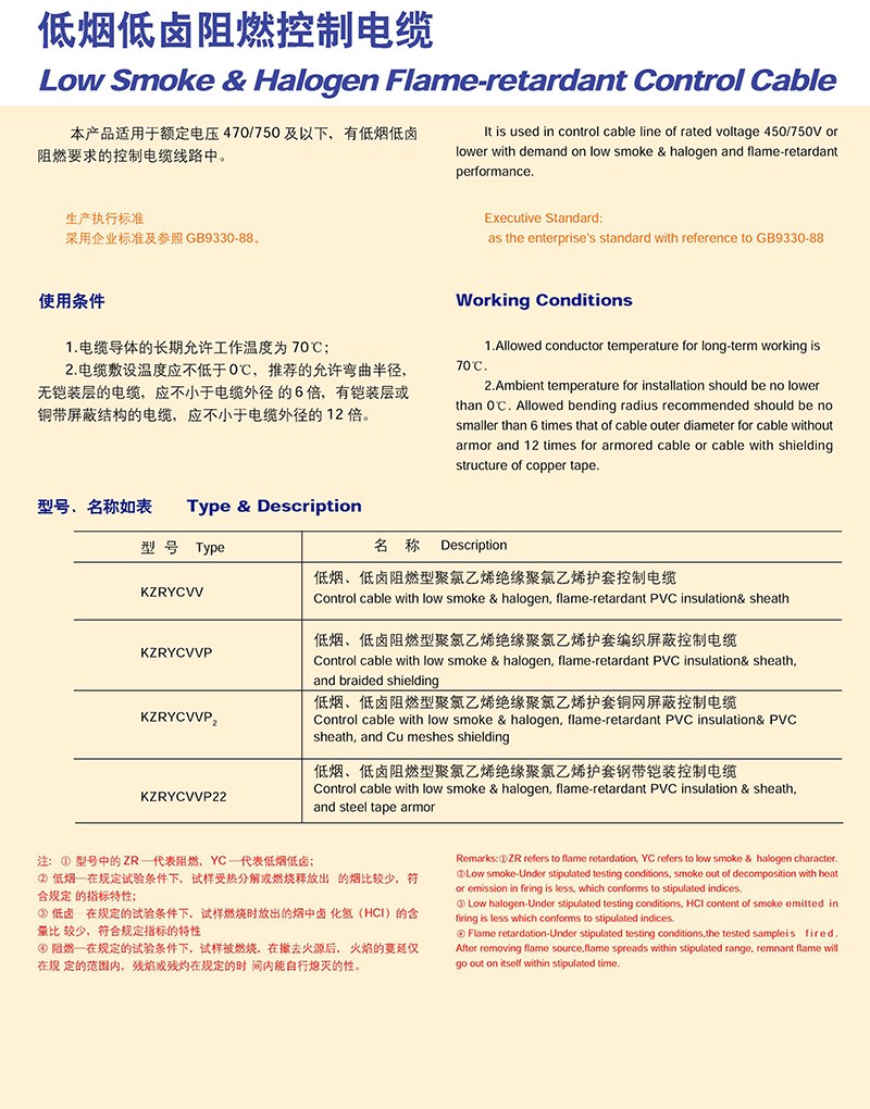 低煙低鹵阻燃控制電纜的產(chǎn)品詳細(xì)介紹: