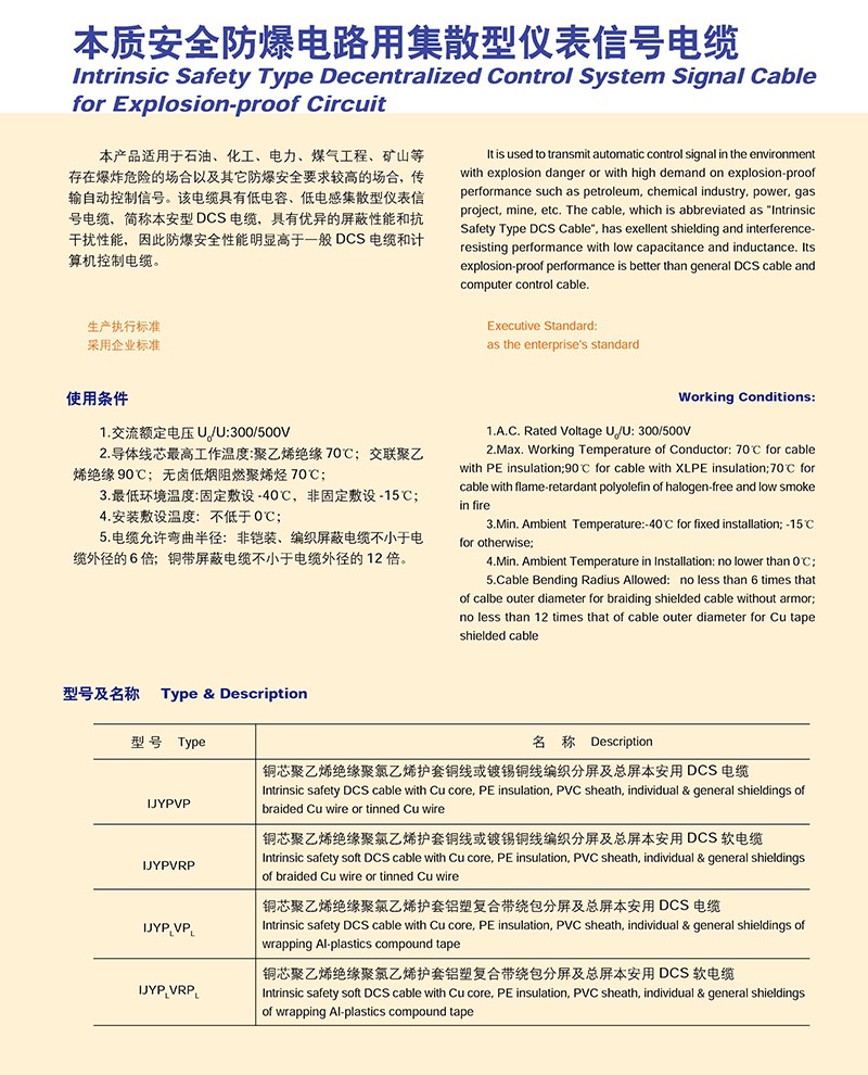 本質(zhì)安全防爆電路用集散型儀表信號電纜的產(chǎn)品詳細(xì)介紹: