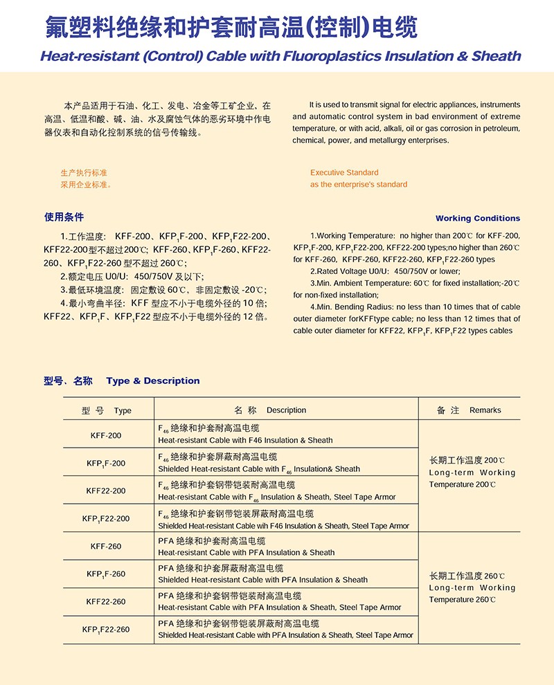 氟塑料絕緣和護(hù)套耐高溫(控制)電纜的產(chǎn)品詳細(xì)介紹: