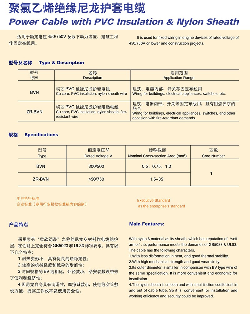 聚氯乙烯絕緣尼龍護(hù)套電纜的產(chǎn)品詳細(xì)介紹:
