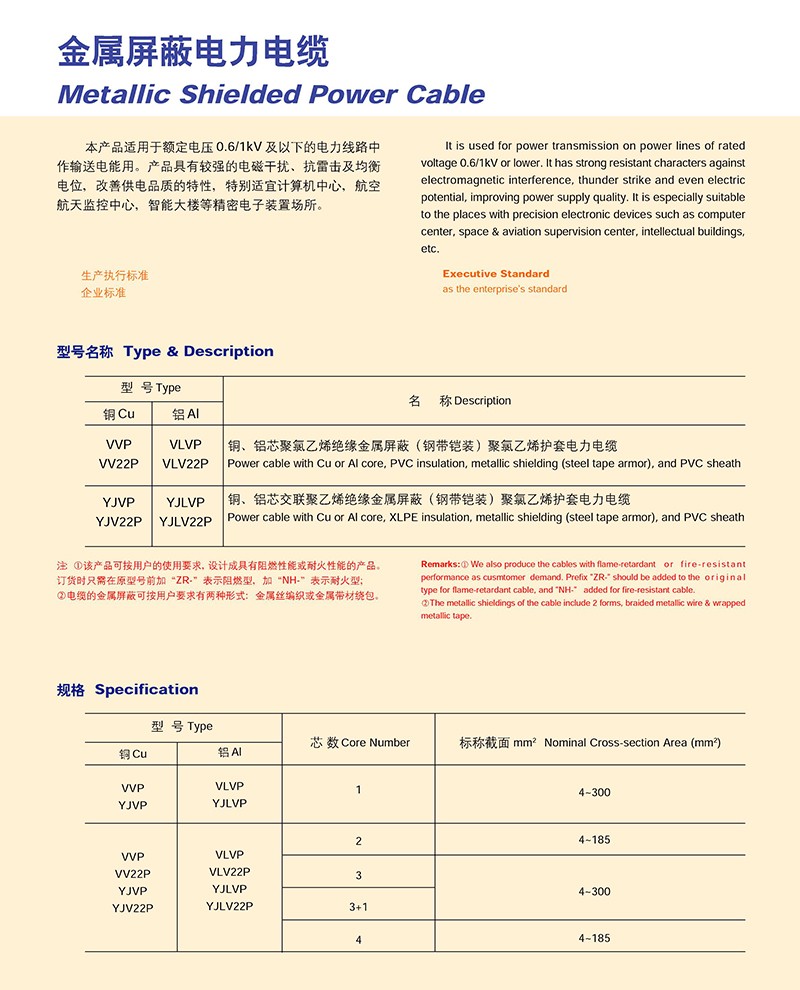 金屬屏蔽電力電纜的產(chǎn)品詳細(xì)介紹: